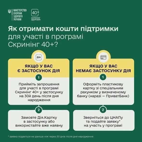 Дочекайтеся запрошення. Воно надійде у застосунок Дія на 30-й день після вашого дня народження (для тих, кому вже виповнилося 40+).